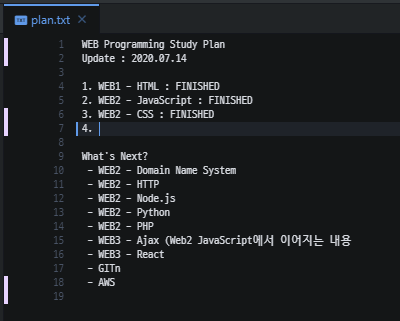 Web1 - HTML & Internet, Web2 - JavaScript, Web2 - CSS 세 개의 수업을 모두 끝내며 처음 세웠던 계획은 달성했다. CSS 수업이 끝나갈 때쯤, 생활코딩 홈페이지에서 다음에 들을 강의를 찾으며 둘러봤는데, 듣고 싶은 강의들이 엄청 많았다. 과연 이 카테고리의 다음 글은 무엇이 될까? 잠시 행복한 고민에 빠질 차례이다.