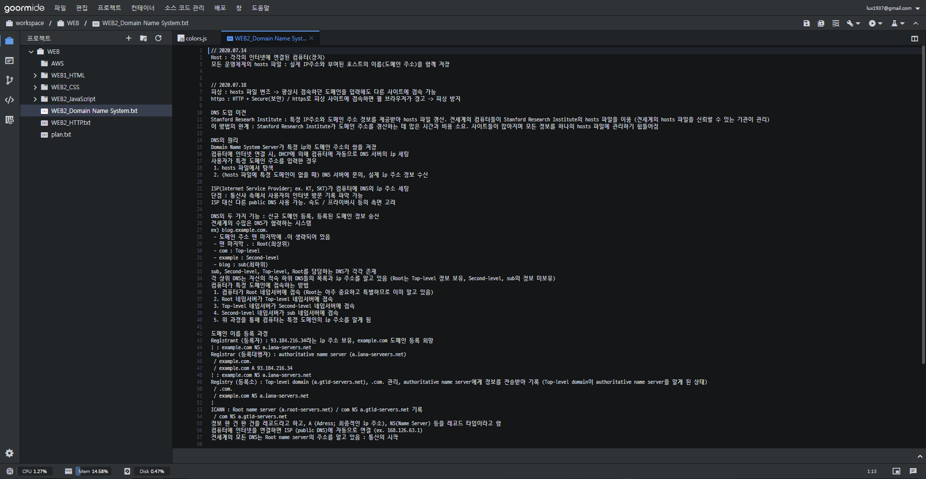 이 강의의 경우 직접 코딩을 할 필요는 없었다. 그럼에도 가만히 영상만 보고 있으면 나중에 기억도 나지 않고 집중도 잘 되지 않을 것 같아, 구름 IDE에 txt 파일을 만들어 강의 내용을 기록하며 학습했다.