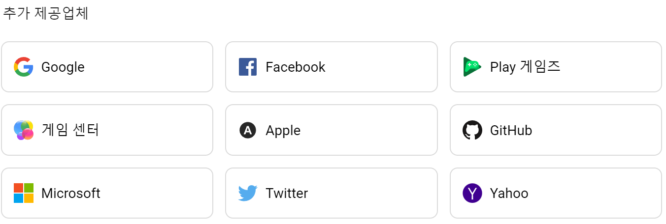 사실 SOPT에 들어오기 전에도, Passport.js라는 라이브러리를 활용해서 페이스북과 구글 소셜 로그인을 구현해 본 적이 있었다. 하지만 이번 프로젝트에서는 서버를 FIrebase 환경에서 구현했기 때문에 Firebase에서 자체적으로 제공하는 Authentication 기능을 활용하기로 했다. 하지만 문제가 있었는데, 카카오가 한국에서만 주로 사용되는 서비스이기 때문에, Firebase에서 공식적으로 지원하는 소셜 프로필 목록에는 속하지 않는다는 점이었다. 이 때문에 Firebase에서 제공하는 Custom API를 수정해 사용해야 했다.