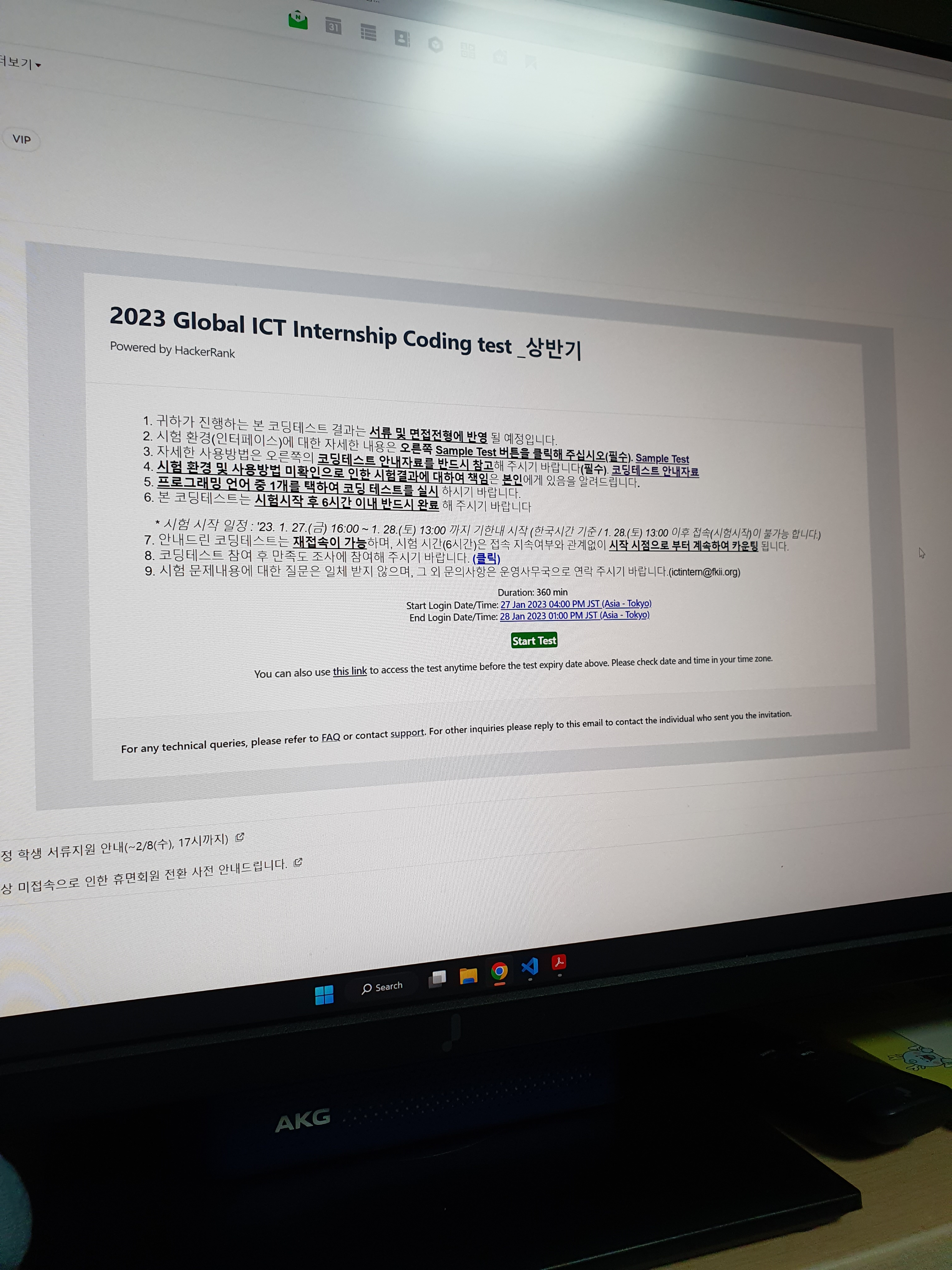ICT 글로벌 인턴십은 서류와 코딩 테스트를 함께 고려 해 면접 대상자를 선정했고,
