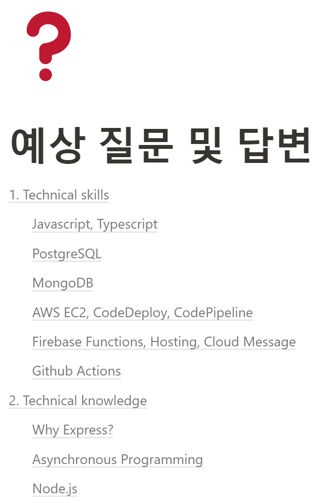 특정 경험에 대해 물어볼 수 있는 예상 질문들을 적어 보았고, 그와 연관된 기술적 내용들에 대해서도 꼼꼼히 확인했다.